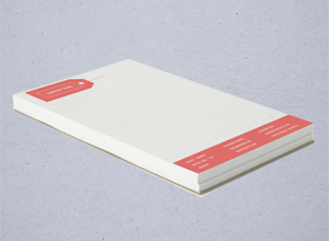 Bloc note de 25 feuilles de format divers, sur papier blanc non-couchés, avec carton au dos, avec diverses options d'impressions.