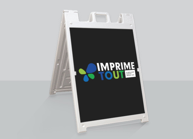 Signicade avec structure solide en PVC blanc avec 2 encarts en coroplast blanc 4mm  imprimé pleines couleurs recto (4/0 CMYK)